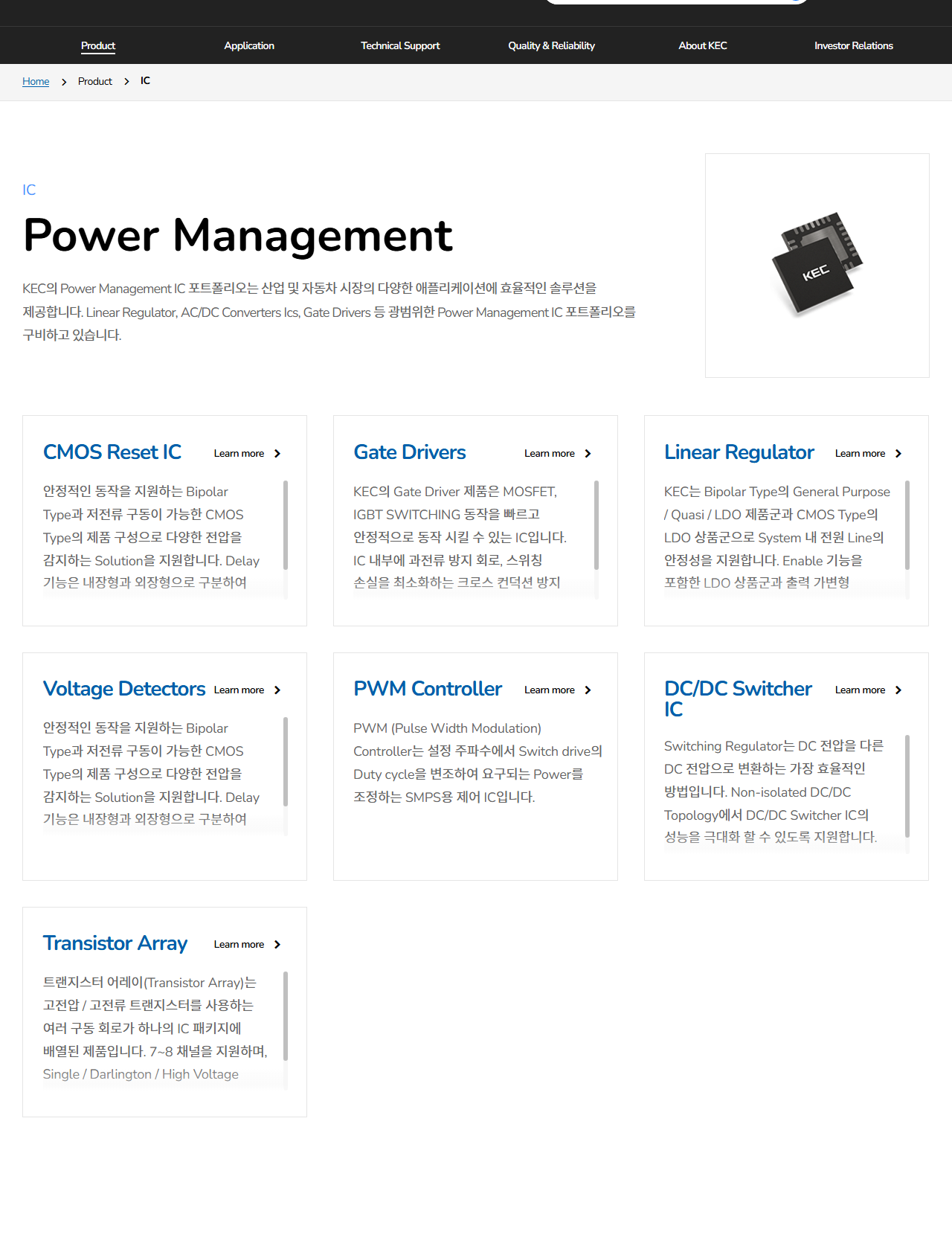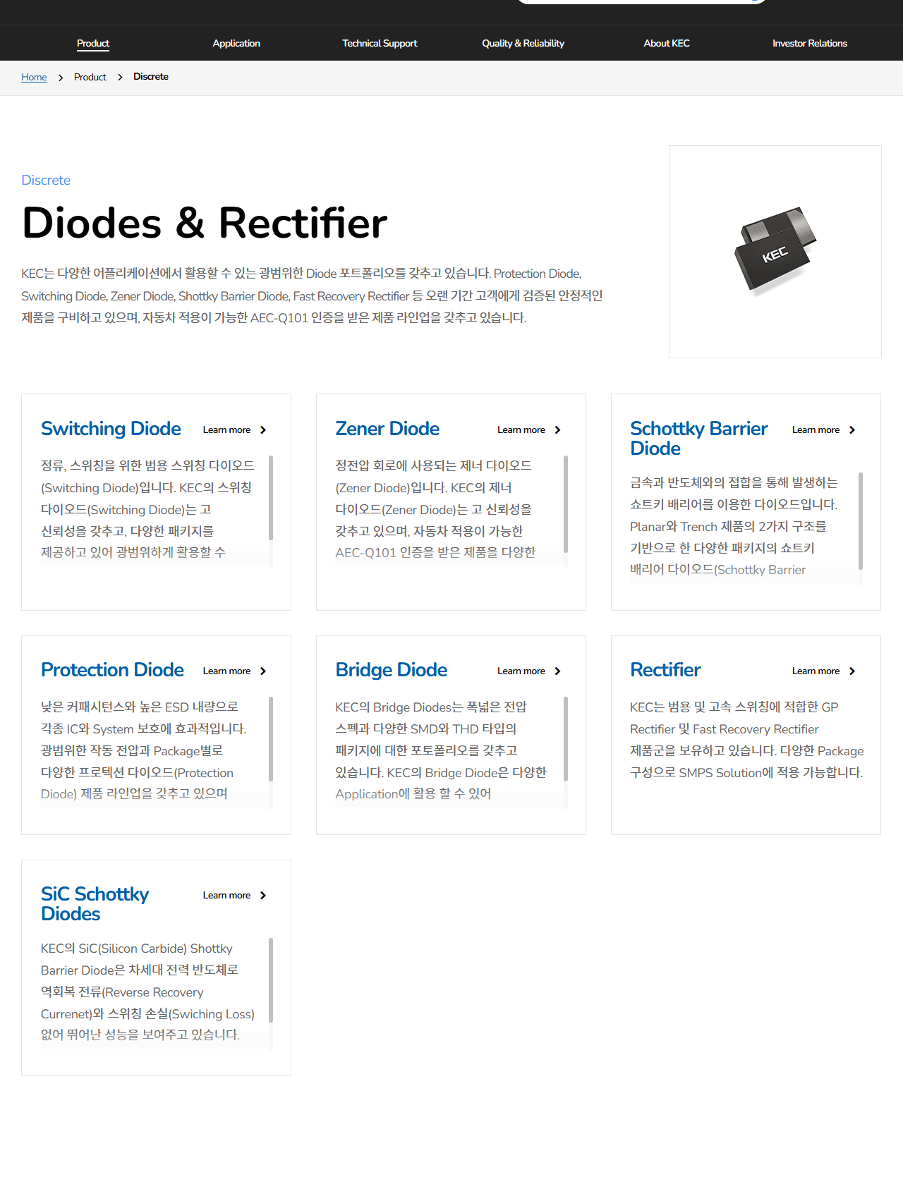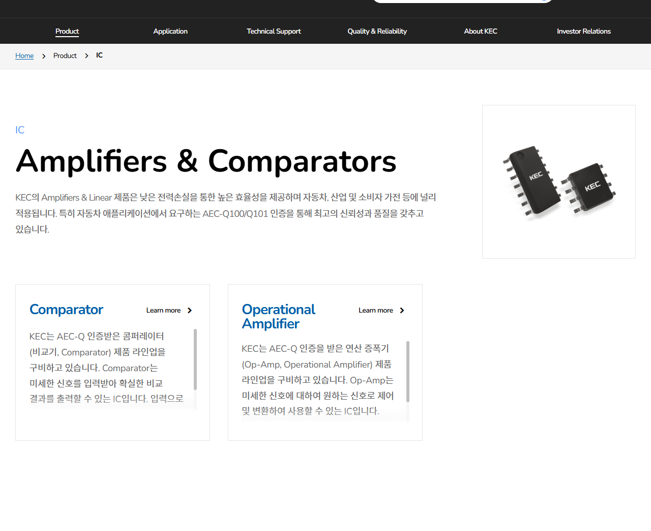 -내용 : 전력반도체 업체 KEC가 글로벌 완성차 업체 대상 SiC 공급 확대 소식에 상한가를 기록했다. 회사는 전기차용 트렌치 구조 SiC MOSFET 개발에 성공하며 이 기술의 양산이 가능한 전 세계 3개 기업 중 하나로 자리매김했다. 다만 SiC 시장의 구조적 성장 가능성에도 불구하고, ON세미컨덕터 등 글로벌 대기업과의 경쟁 및 수익성 과제가 지속되고 있다.