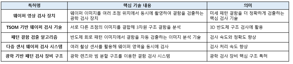 ▶ 특허 보유: 광학적 웨이퍼 검사 장치의 해상력 강화 방법 및 이를 이용한 TSOM 영상 획득 방법 등을 포함한 22개의 특허를 보유 중에 있으며 1개의 특허를 출원 중에 있습니다. 특허 출원국은 미국, 일본, 한국 등입니다.