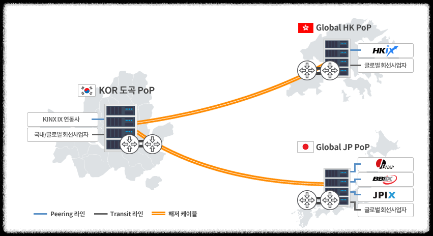 국내 IX(KRIX) 운영 | 전 세계 70개국 IDC 운영 |