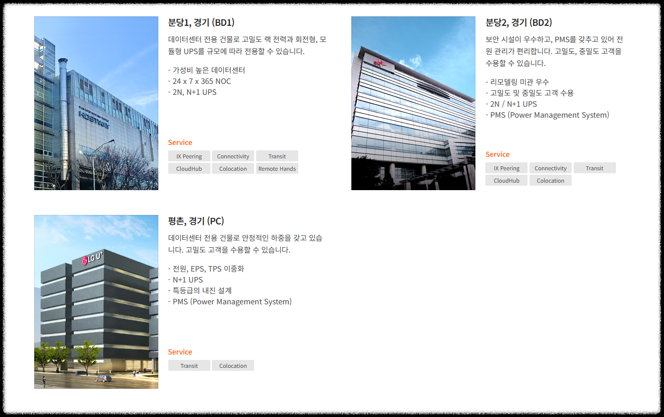 | 사업분야 | IDC·IX·클라우드·CDN (중립 IX 기반) | IX(KRIX)·통신 | 글로벌 IDC·인터커넥션 (리츠) |