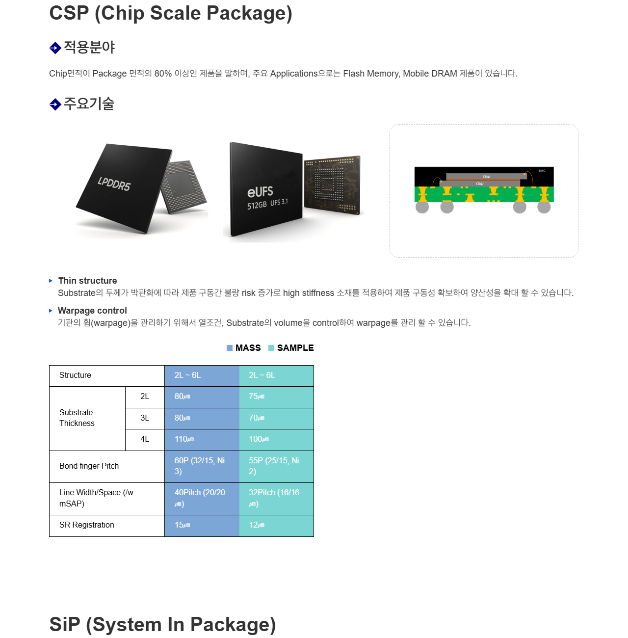 | 주력 제품 | 메모리·비메모리 PKG 기판, FC-BGA, MLB | 초고다층 MLB (AI 가속기, 서버, 네트워크용) | 메모리 모듈 PCB, FC-CSP, SiP 모듈 기판 |