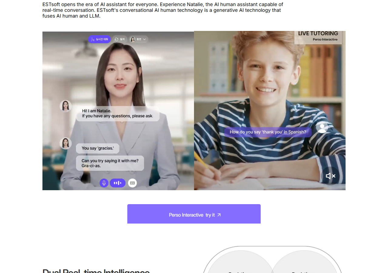 -내용 : 이스트소프트가 사람과 실시간으로 대화할 수 있는 AI 휴먼 서비스 '페르소 인터랙티브' 출시를 앞두고 있습니다. 2022년부터 3년 넘게 개발해 온 서비스로, 이스트소프트 AI 사업 구조의 최상단에 위치한 '피지컬 AI'를 구현하는 서비스입니다. NTT, KT, SK하이닉스, 포스코홀딩스 등 다수 기업과 기관에서 활용이 급격히 늘고 있습니다.